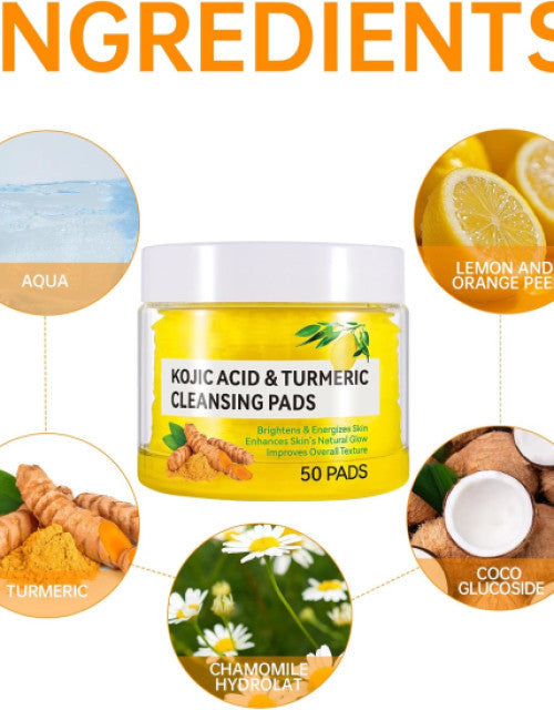 50 Pcs Turmeric Cleansing Pads,Kojic Acid and Turmeric Cleansing Pads